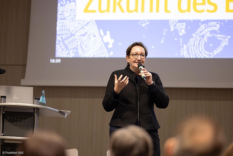 Am 20.11.2023 hat das Frankfurter Forschungsinstitut FFin an der Frankfurt University of Applied Sciences den Kongress „Energieeinsparungen beim Bauen im Bestand – Rückblick und Ausblick“ veranstaltet. Neben Rednerinnen und Rednern aus Forschung und Praxis, die sich mit Fragen rund um das Thema Energiewende befasst haben, war besonderer Ehrengast die Bundesministerin für Wohnen, Stadtentwicklung und Bauwesen Klara Geywitz, die im Rahmen einer Gastvorlesung zur Zukunft der Städte – Zukunft des Bauens referiert und anschließend im Expertengremium zu Stadtplanungsfragen diskutiert hat.